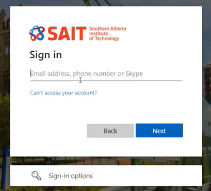 Enter your SAIT Student email address (your @edu.sait.ca email).