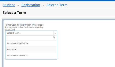 Click Select a Term drop-down menu and choose the term in which your classes will occur.