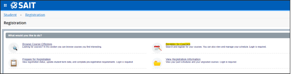 Step-by-Step Walkthrough: Shows you how to log in to mySAIT and register for your classes.