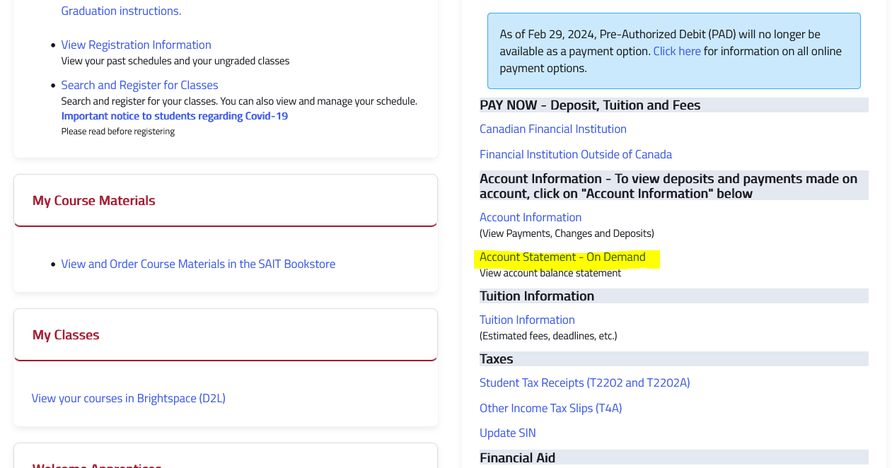 - Account Activity is a list of all transactions applied to your account - found on mySAIT, myStudent page, Financial information section, Account information link